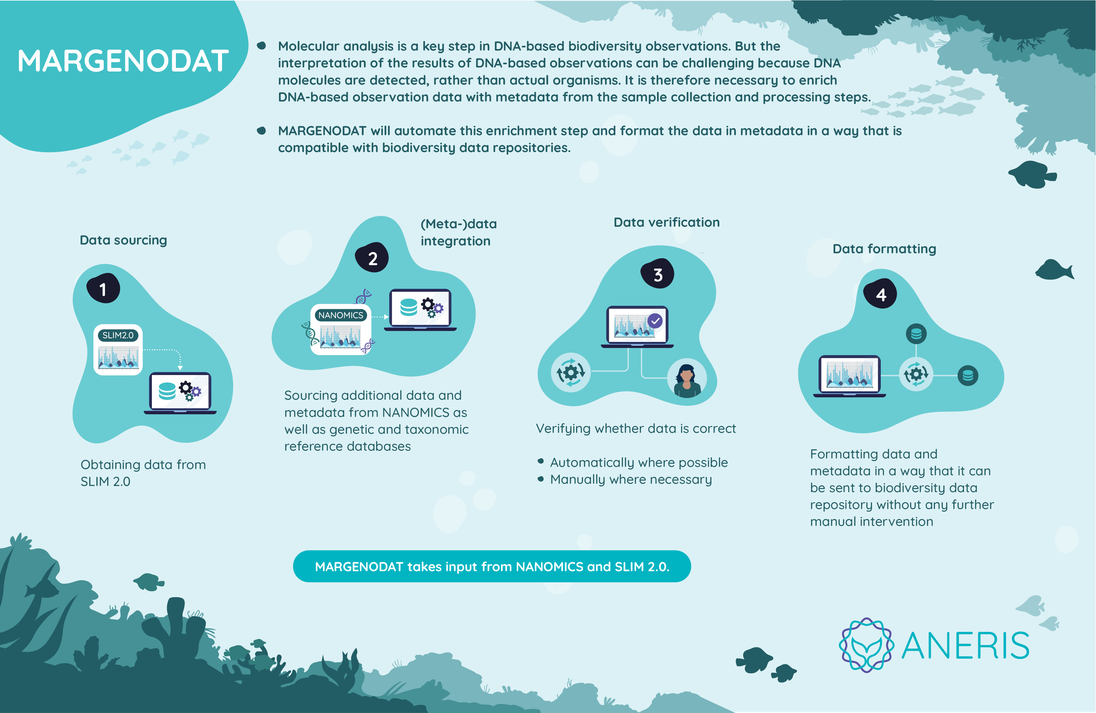 ANERIS will provide procedures that format sequencing data output according to Darwin Core Archive (DwC-A) and MIXS standards, enabling non-expert data managers to effectively contribute to European data aggregators.
